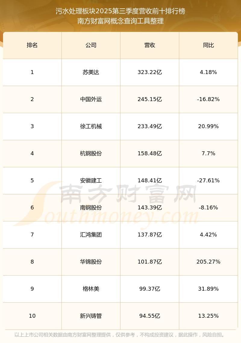 按照南方財富網(wǎng)概念查詢工具統(tǒng)計,該股所屬板塊為污水處理板塊,該板塊共有202只股票,武漢控股2025第三季度營收在該板塊中排名為第68名,該板塊2025第三季度營收排名前十的股票如下表: