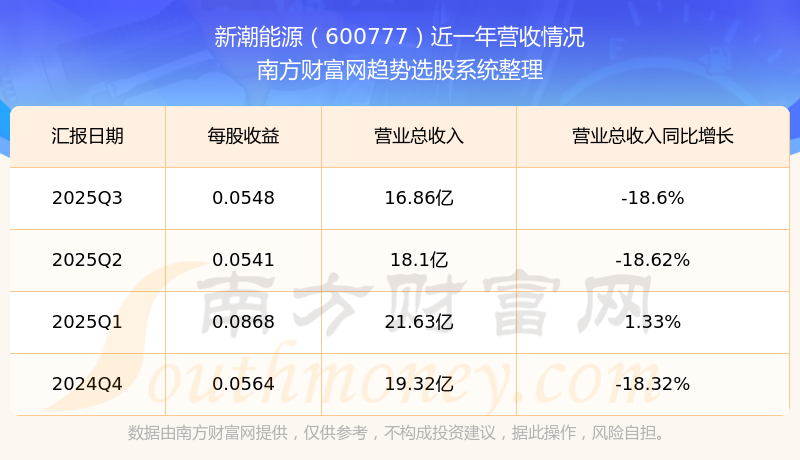 新潮能源2025年第三季度顯示,公司主營(yíng)收入16.86億元,同比-18.6%;歸母凈利潤(rùn)3.73億元,同比-22.42%;扣非凈利潤(rùn)3.73億元,同比-30.79%;