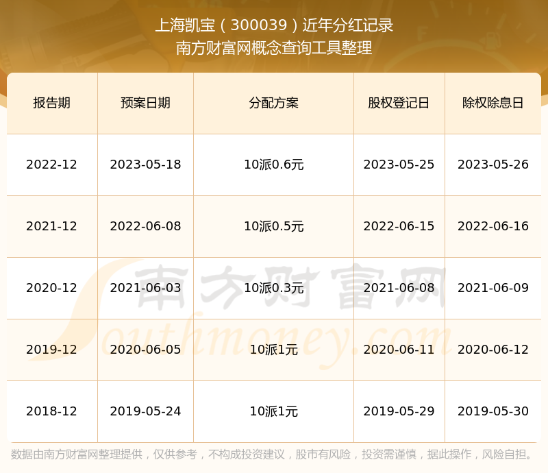 上海凱寶最新一次公布的分紅方案:10派0.6元。