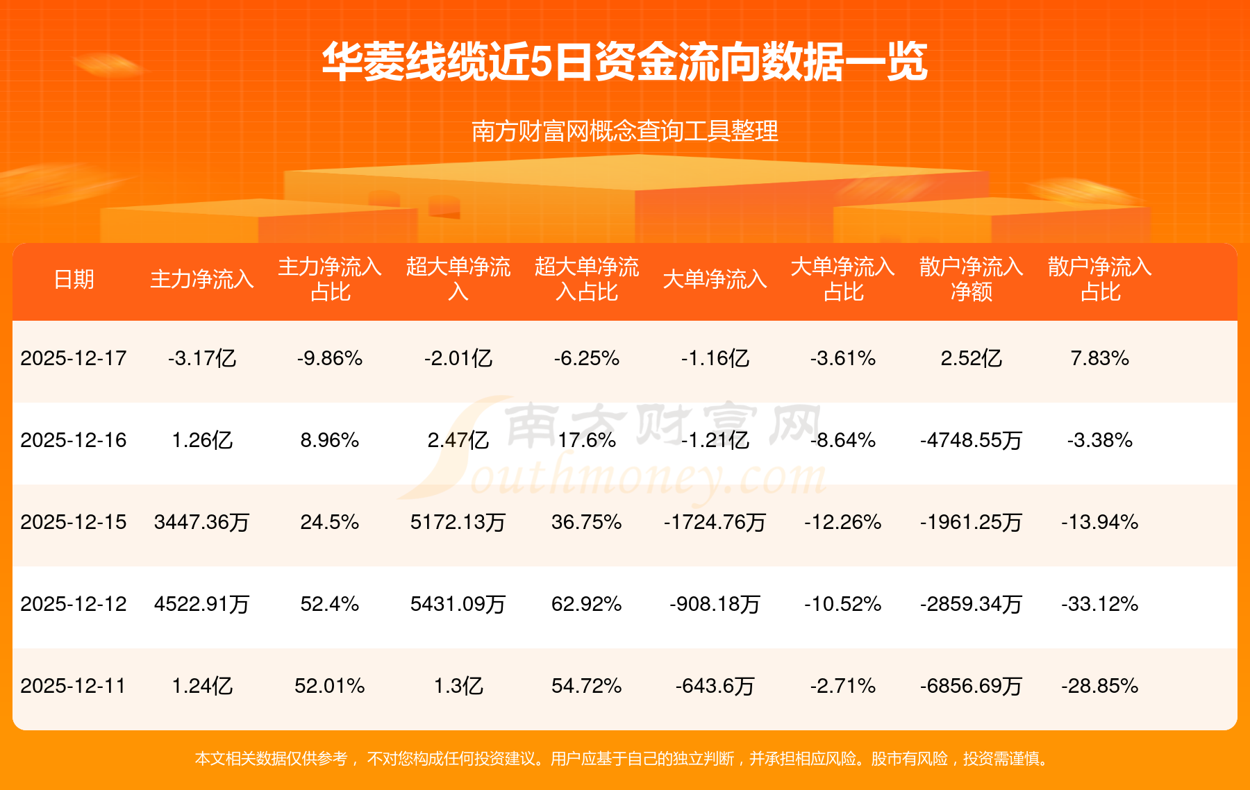 12月17日消息,華菱線纜12月17日主力資金凈流出3.17億元,超大單資金凈流出2.01億元,大單資金凈流出1.16億元,散戶資金凈流入2.52億元。