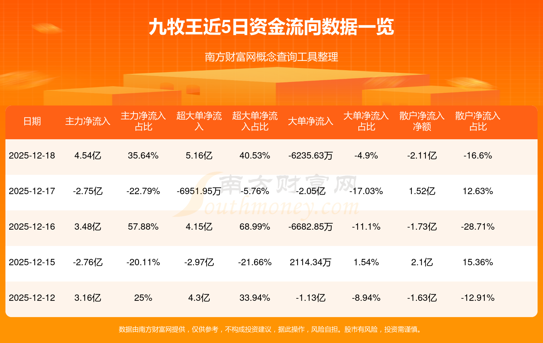 12月18日主力資金凈流入4.54億元,超大單資金凈流入5.16億元,換手率14.81%,成交金額12.73億元。