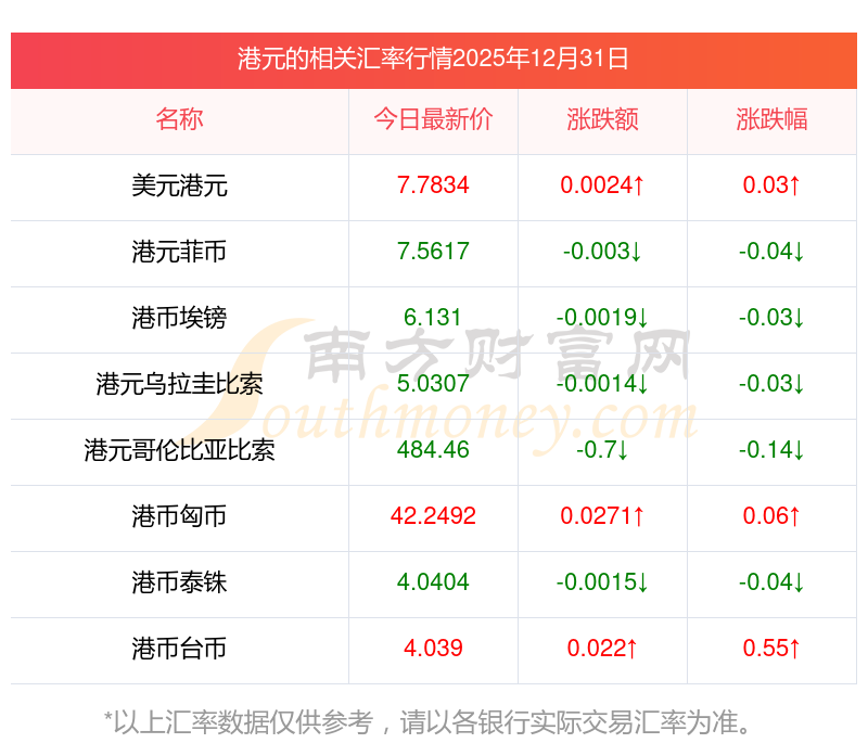 2025年12月31日港元相關(guān)匯率查詢
