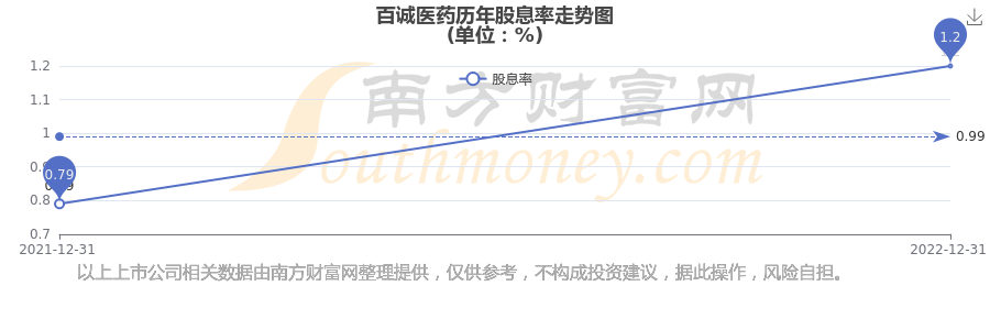近年百誠醫(yī)藥年度股息率走勢如下圖: